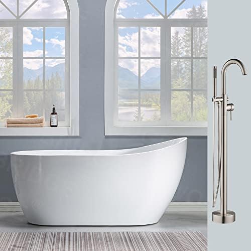 Amazon Com Woodbridge Acrylic Freestanding Contemporary Soaking Tub With Brushed Nickel Overflow And Drain B 0006 Bta1507 54 Bathtub White Everything Else
